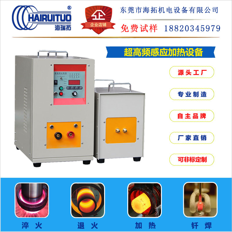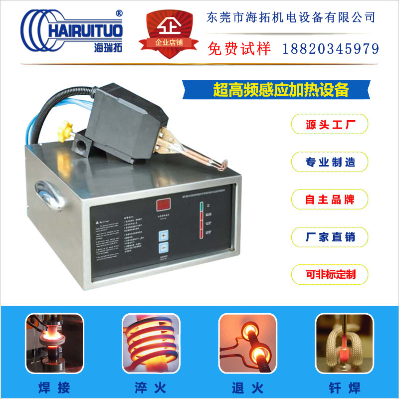 超高頻感應加熱設備具備工作頻率高(可加熱焊接最小0.1mm),設備體積較小,重量較輕,環保節能(比玻璃陶瓷電子管高頻機省電70%),并且焊接點結實牢固美觀大方精美,被焊接件基本上形狀不受限制,表面層紋路不容易受損,金屬材料內部晶體結構不變,退火范圍小,無明顯焊疤而被廣泛使用于金屬眼鏡制造業,電器電子行業的接插件焊接,小型繼電器內部的不接觸焊接,制冷業的耐高壓焊接,首飾行業各部件間的焊接和金屬材料飾品及工藝制造業的焊接。中國內地最開始有代表性的產品為東莞海拓生產的htg-2型超高頻機,振蕩工作頻率為:1.5MHZ。