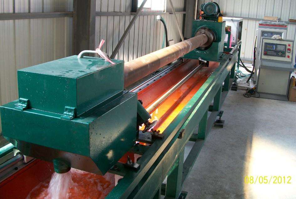 以前,金屬材料(如鋁合金 鐵 銅等)生產(chǎn)成型的工件產(chǎn)品采用硝酸鹽(KNO3)浴槽處理。隨著金屬材料(如鋁合金 鐵 銅等)生產(chǎn)成型的工件產(chǎn)品長(zhǎng)度的增加,這類淬火方式已被淘汰。現(xiàn)階段國(guó)內(nèi)、外用得比較普遍的是中高頻淬火爐,此類設(shè)備具備可以自動(dòng)化生產(chǎn),淬火冷卻池直接設(shè)在爐子下方。這類高頻淬火爐具備以下特點(diǎn):