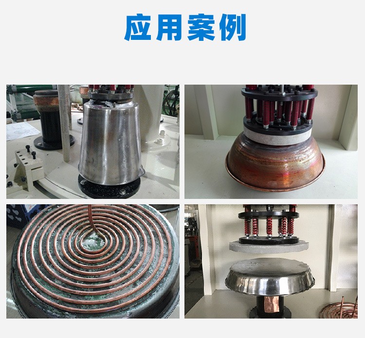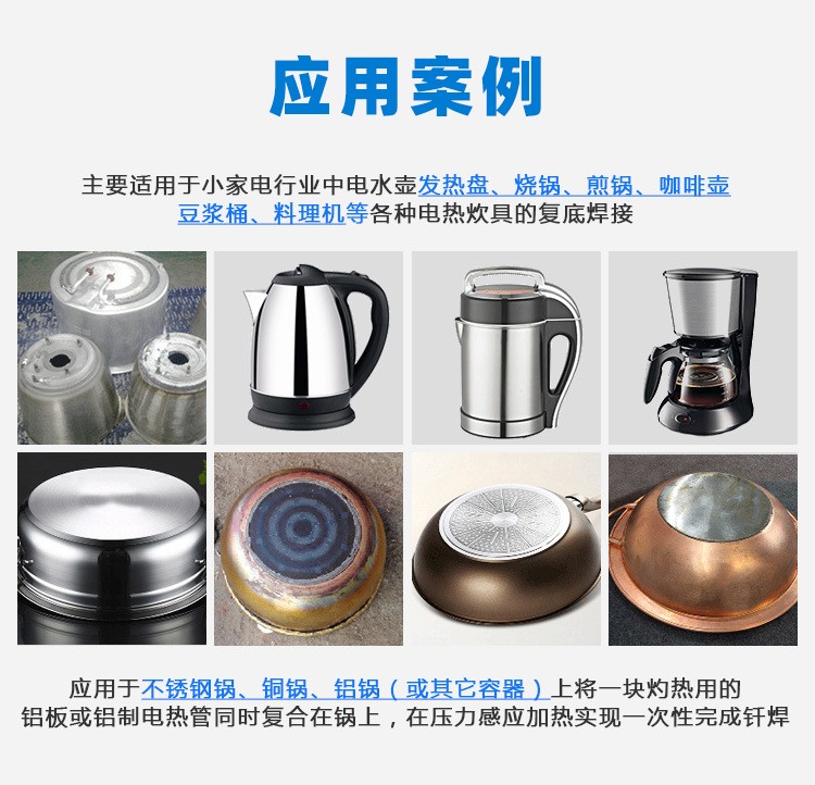 别名Q高频焊接机 型号QHT-QHJ ?sh)压Q?80V 功率Q?5-250kw 用途:(x)应用于不锈钢锅、铜锅、铝?(或其它容?上将一块灼热用的铝板或铝制늃同时复合在锅上Q在压力感应加热实现一ơ性完成钎?/br>