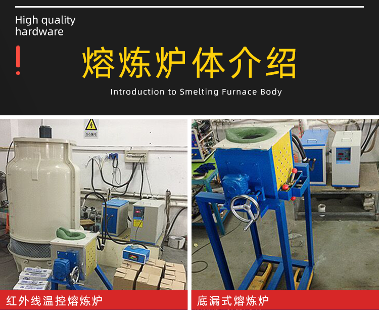 别名Q中频熔炼炉 型号QHTM-S ?sh)压Q?80V 功率Q?5KW 用途:(x)中频感应熔炼炉应用范_(d)(x)矛_坩埚一般用于熔Q铜、铝、银、黄金等金属Q?镁砂坩埚一般用于熔Q铁、不锈钢Q以?qing)熔点较高的金属?熔炼量从1KG?00KG 不等 可根据实际需要定制熔炼量大小