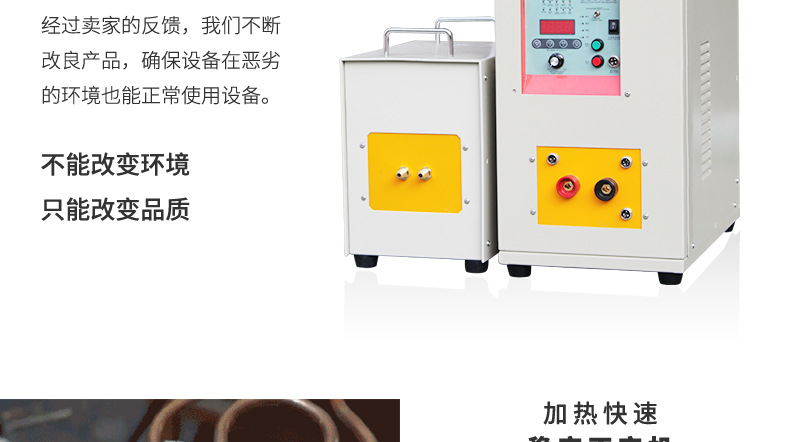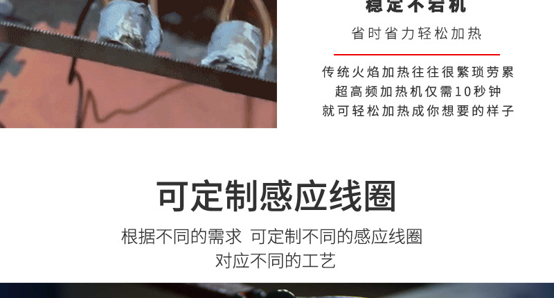 别名Q超高频感应加热?/br> 型号QHTG-20AB 电压Q?80V 功率Q?0KW 用途:该系列设备适合于很多加热途,如:1、硬质合金锯齿焊?、铜接头焊接等3、大轮、大u、轨导等零g热处?、不锈钢或合金钢l丝退火或淬火