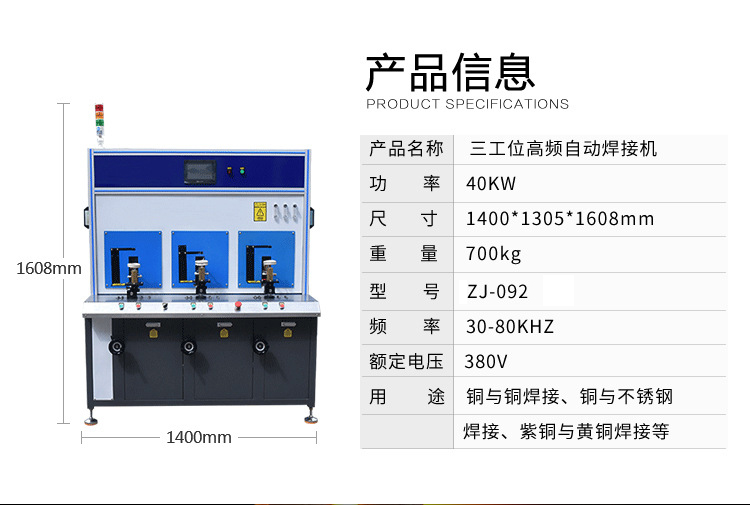 别名Q高频焊接机 型号QHT-QHJ ?sh)压Q?80V 功率Q?5-250kw 用途:铜与铜焊接、铜与不锈钢 焊接、铜与黄铜焊接{。可Ҏ(gu)客户的需求,定向式研发铜焊接、洁兯业、汽车行业、A表行业设计的感半自动/全自动应加热钎焊讑֤?/br>