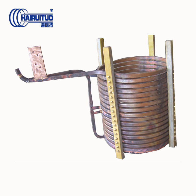 厚壁銅管電磁感應線圈與其他橫截面的感應線圈相比具有更大的載流橫截面,所以線圈電阻低,更多的能量轉換可以用加熱.并且由于四周圍管壁的厚度均勻分布,所以它的強度要比管壁不均勻分布、一邊管壁較薄的電感線圈結構的強度高.也就是說這類結構的電感線圈不容易產生因電弧放電和膨脹而造成的毀壞.